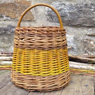 On this course you will make a traditional stake and strand basket, weaving the circular base, before adding side stakes and learning several weaves on the side, using a mix of colourful willow . A trac border and simple overhandle will complete your basket!