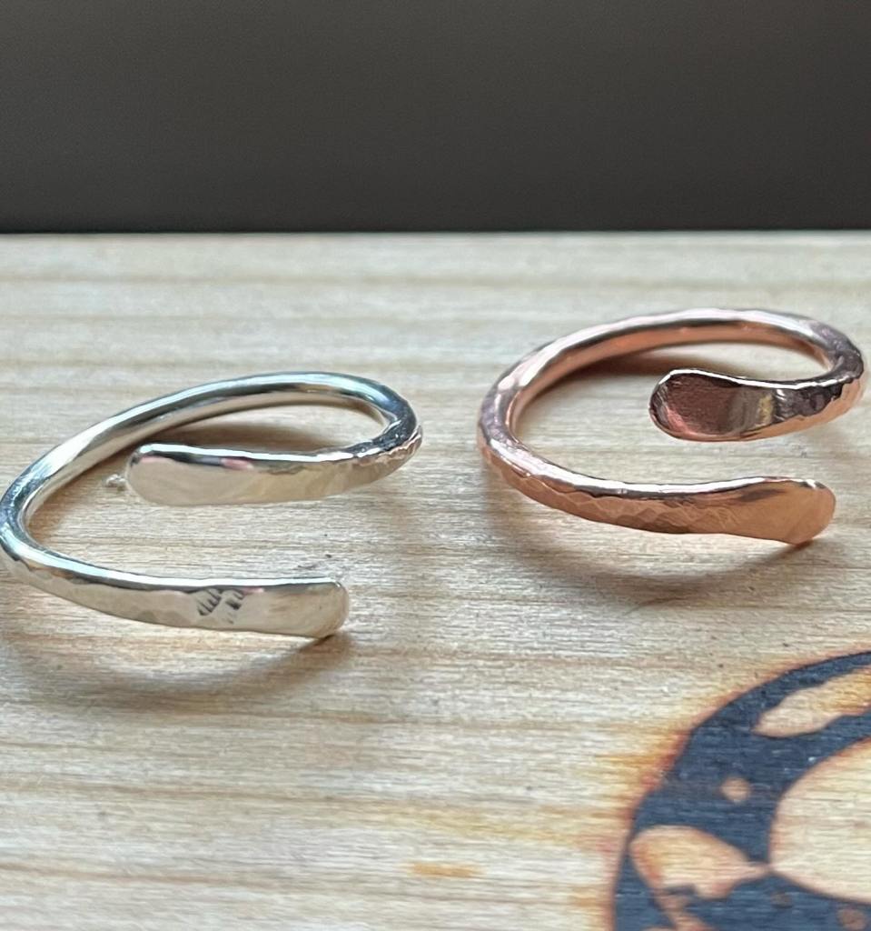 In this workshop, you will learn how to texture, shape and then form a beautiful wrap ring, using 100% recycled silver, with local silversmith Jayne Hunt.